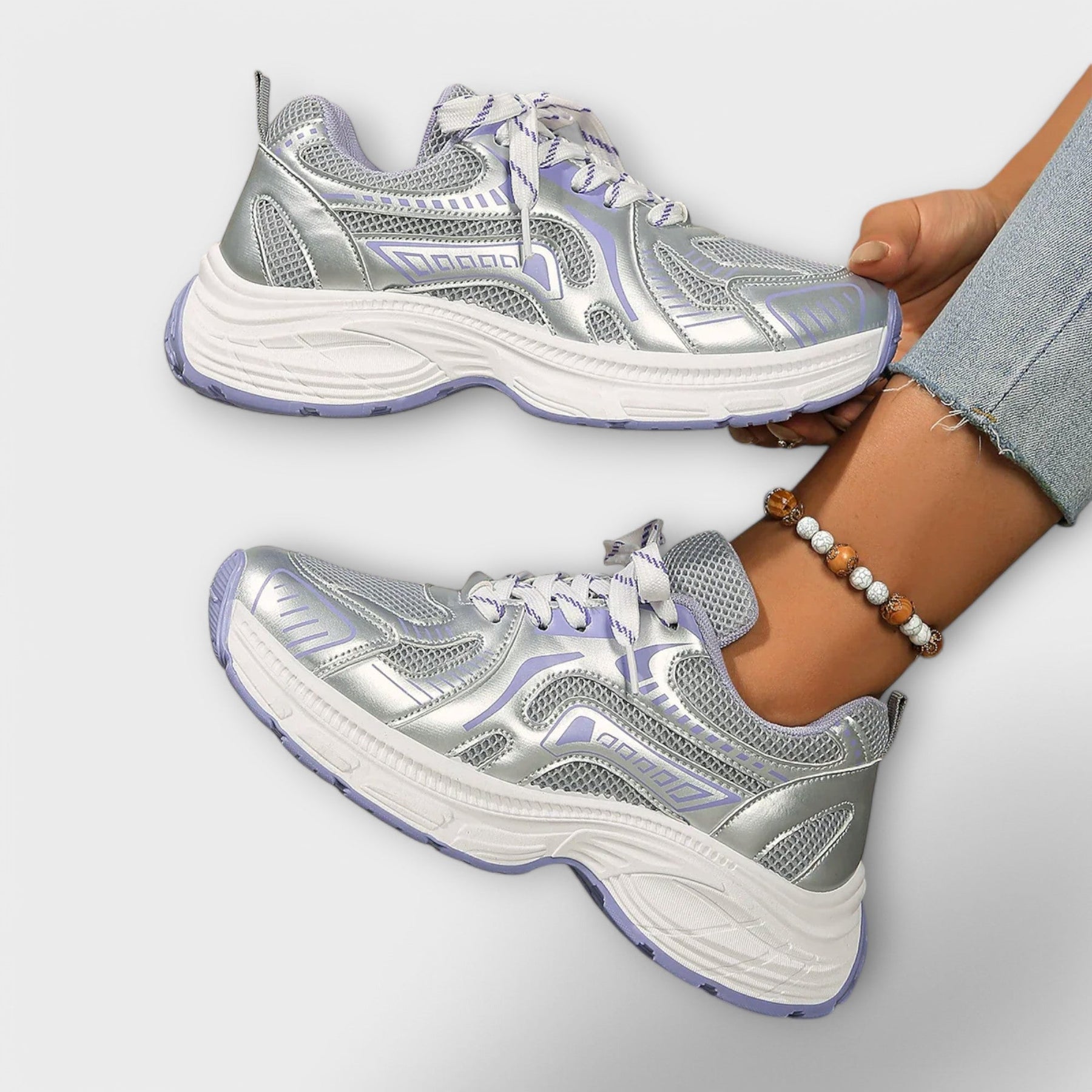 Ladies Sneakers - Chunky Sole - Experience the perfect mix of style and comfort with these trendy sneakers. The breathable mesh and chunky sole provide a comfortable fit, ideal for both daily use and sporty activities. The detailed overlays give a fashionable look.